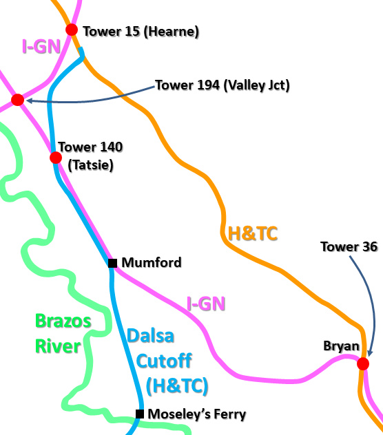 Texas Railroad History Towers 15, 140 and 194 Hearne and vicinity